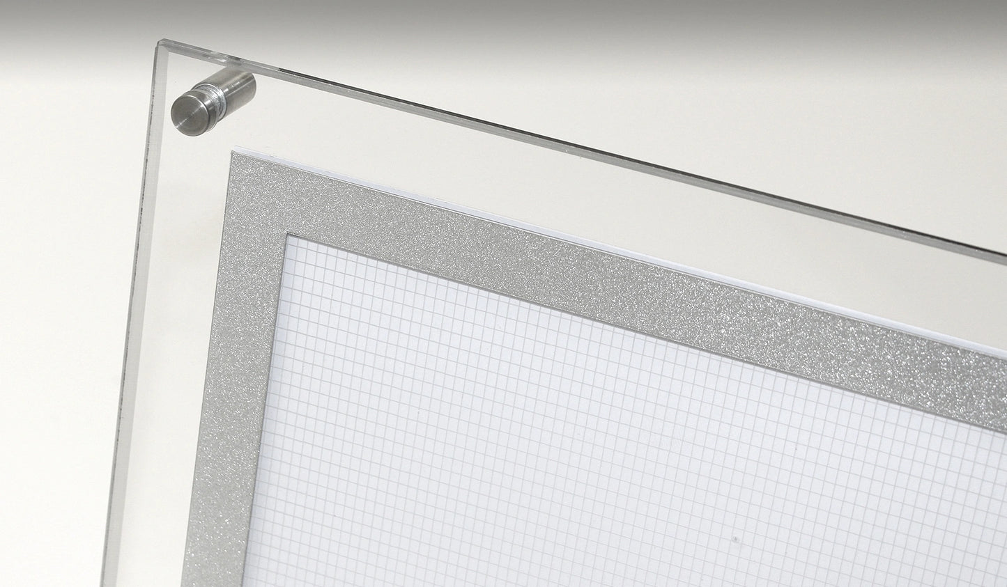 Boîte lumineuse LED ultra-mince en acrylique / Cadre photo (contour argenté) 35,5'' x 59''