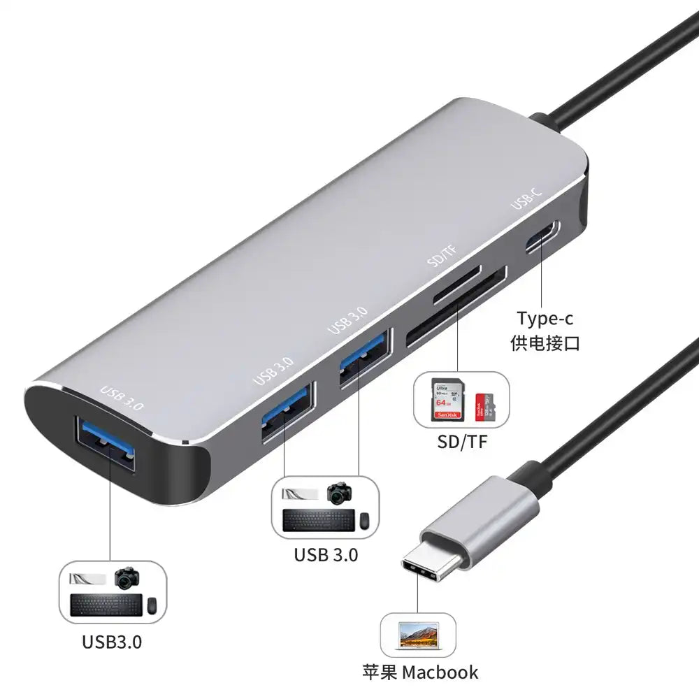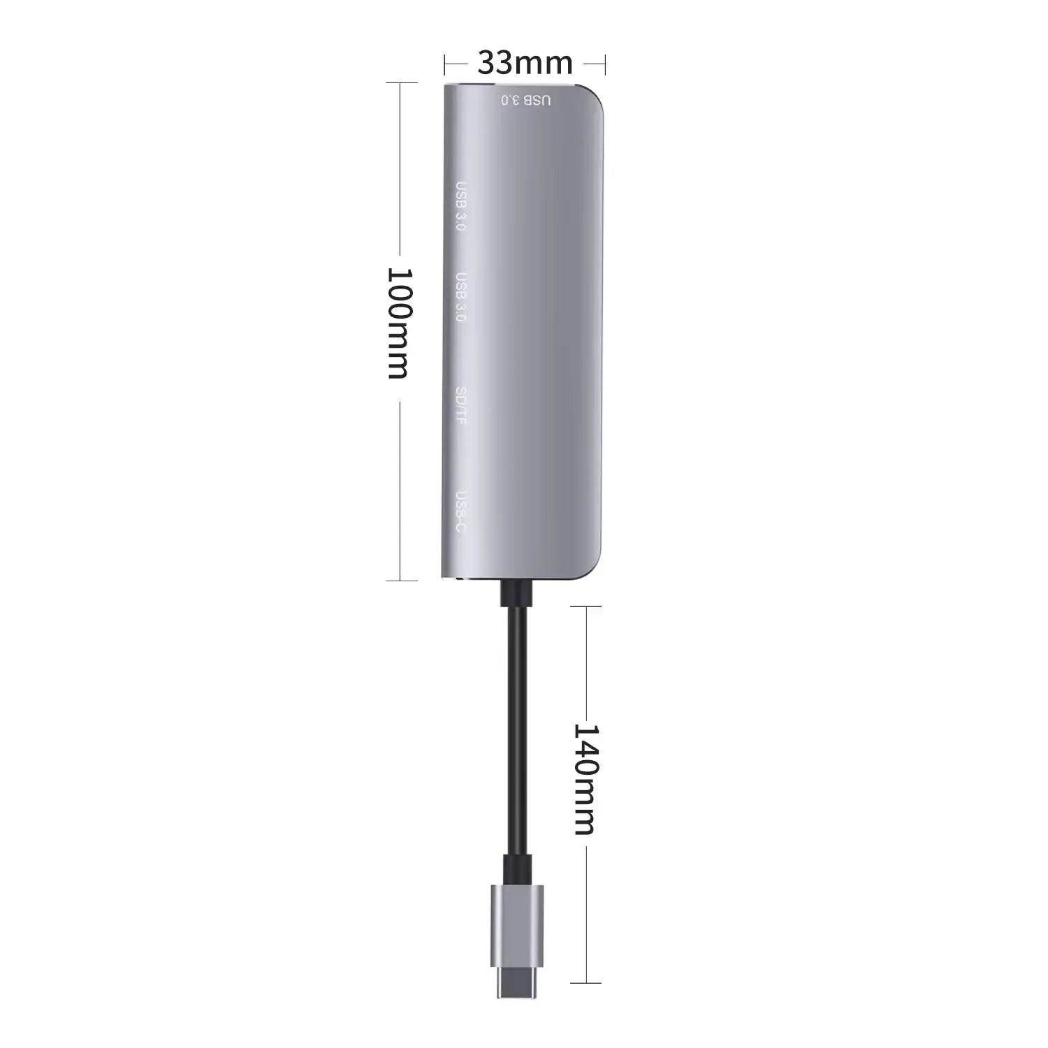 Onten 6 in 1 Type-C Multifunction Dock Station Hub 2x USB 3.0, SD/TF Card Reader, HDMI, Type-C PD Port - Grey