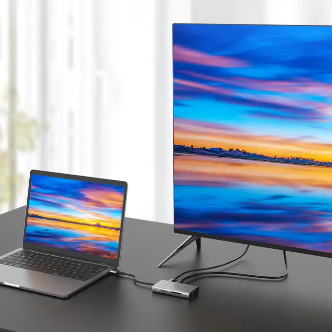 The 8 in 1 USB-C docking station is designed for extra connectivity demands. With this docking , you can extend the connection of a laptop to more USB peripherals, Ethernet network, the HDMI or VGA displays through USB C interface. With the HDMI and VGA ports, you can mirror your primary screen, or extend the windows desktop allowing visibility of more application at the same time. This docking station is the most versatile accessory that make your office space more convenient.