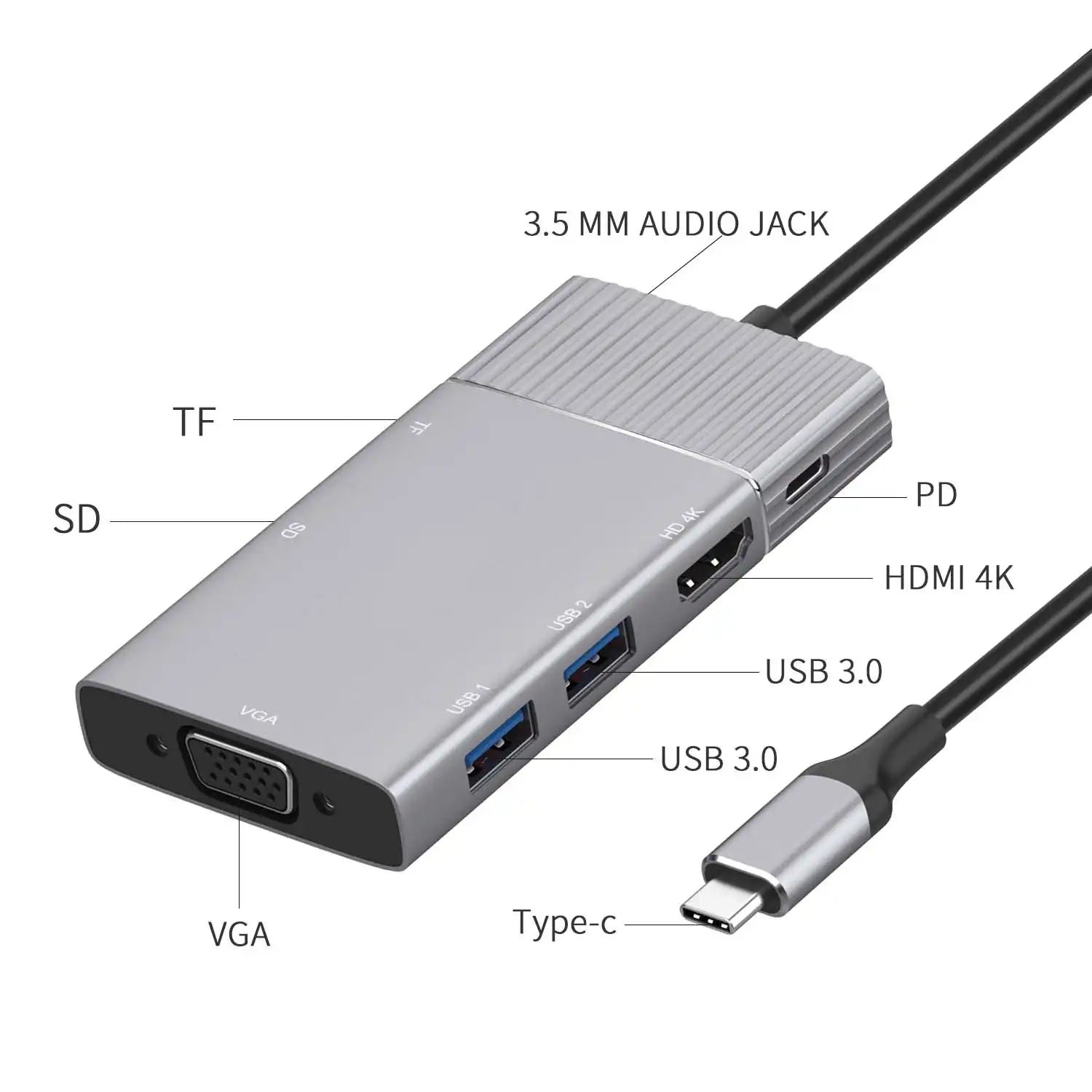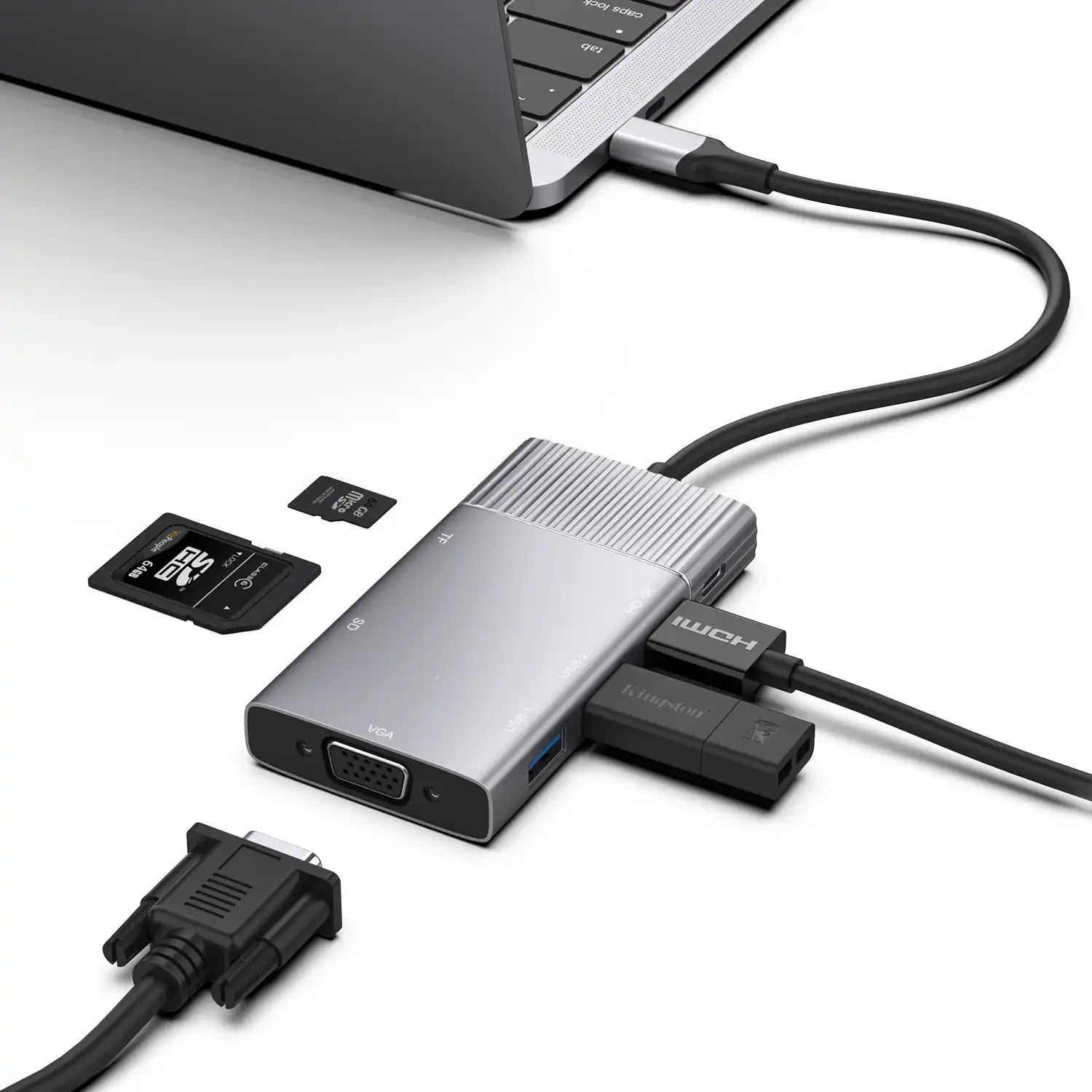 Onten 8 In 1 Multifunction HUB Converter Dock Station (Card Reader) USB 3.0 x2 + SD / Micro-SD + HDMI / VGA + 3.5mm Jack + Type-C / USB-C (PD 3.0)