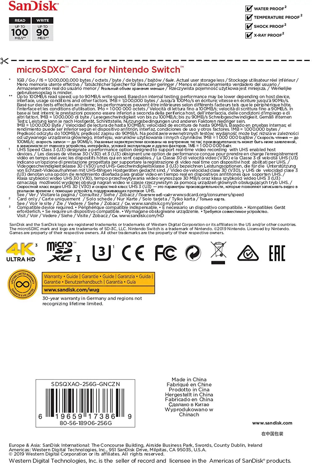 Sandisk Memory Card Micro SDXC 256GB For Nintendo Switch / SDSQXAO-256G-GNCZN