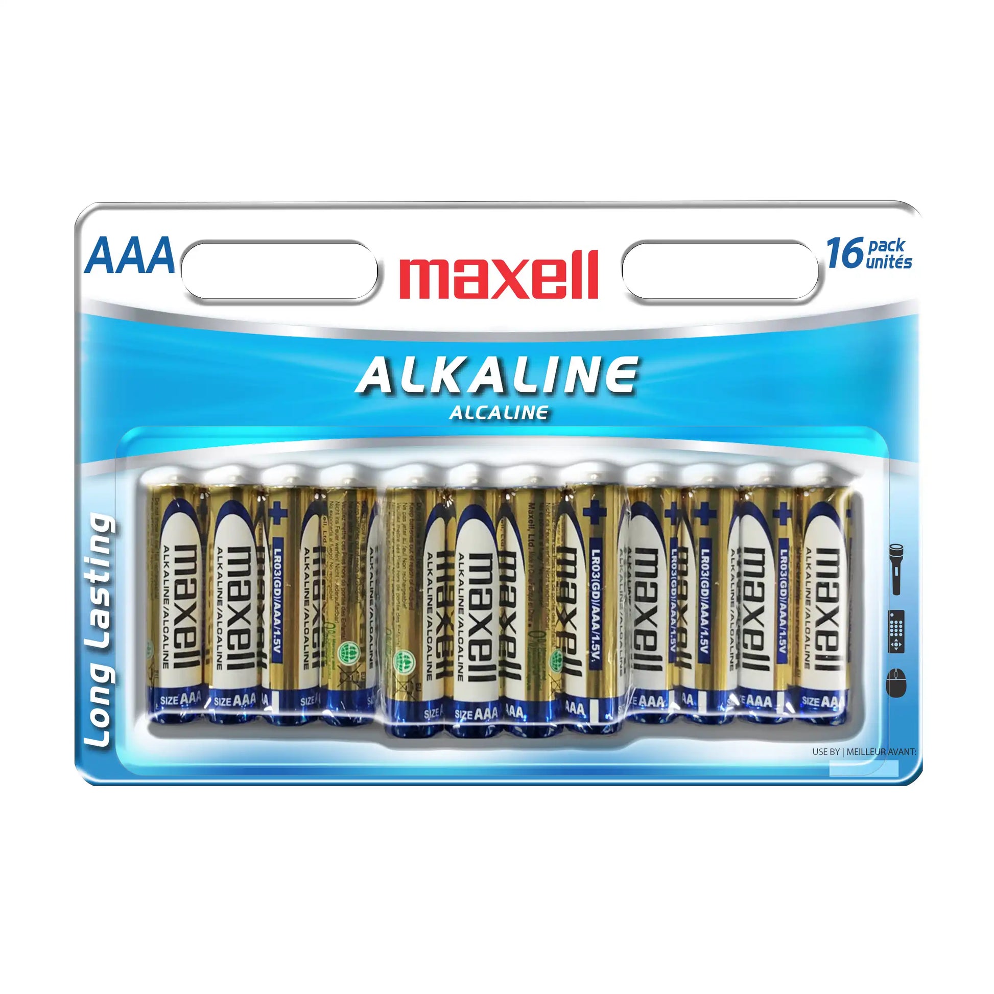Maxell 723472 Alkaline Batteries AAA, Pack of 16.