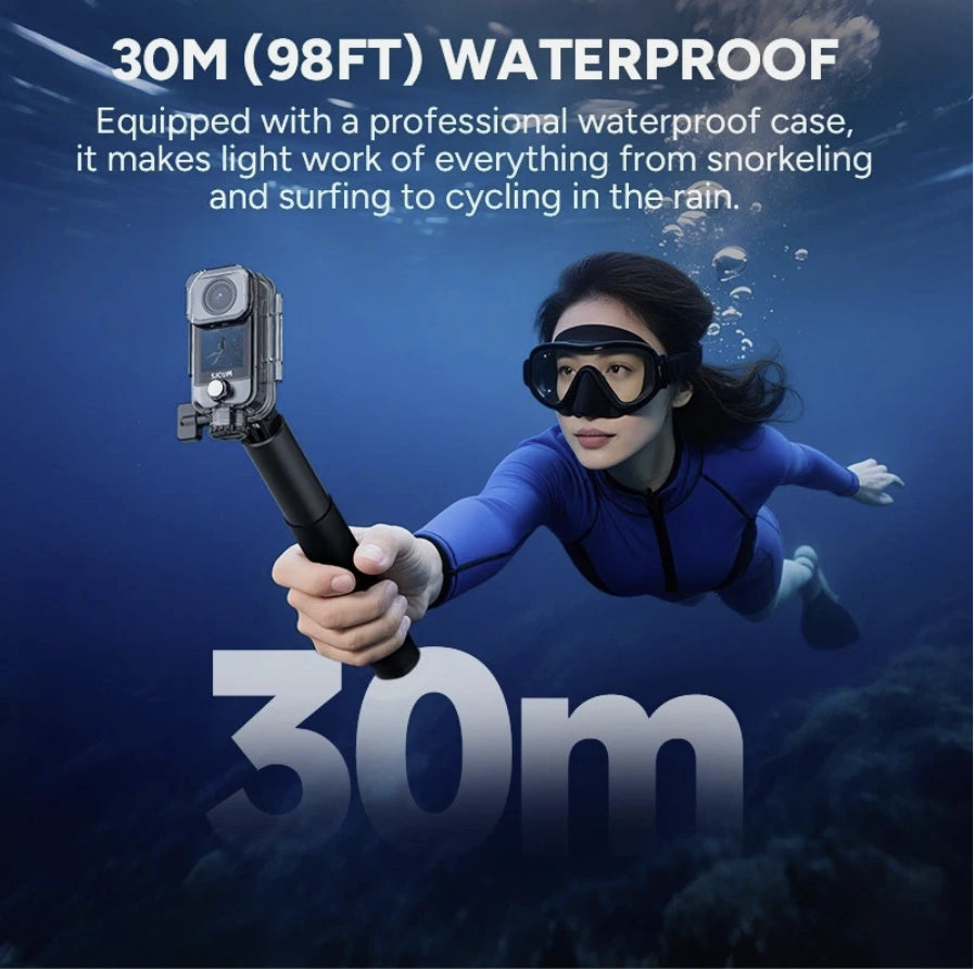 Waterproof up to 30 m with included case (shockproof and dustproof)