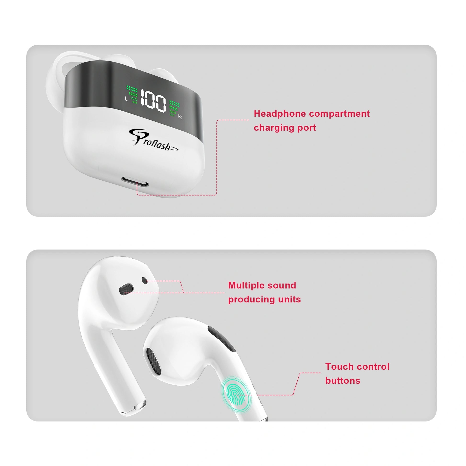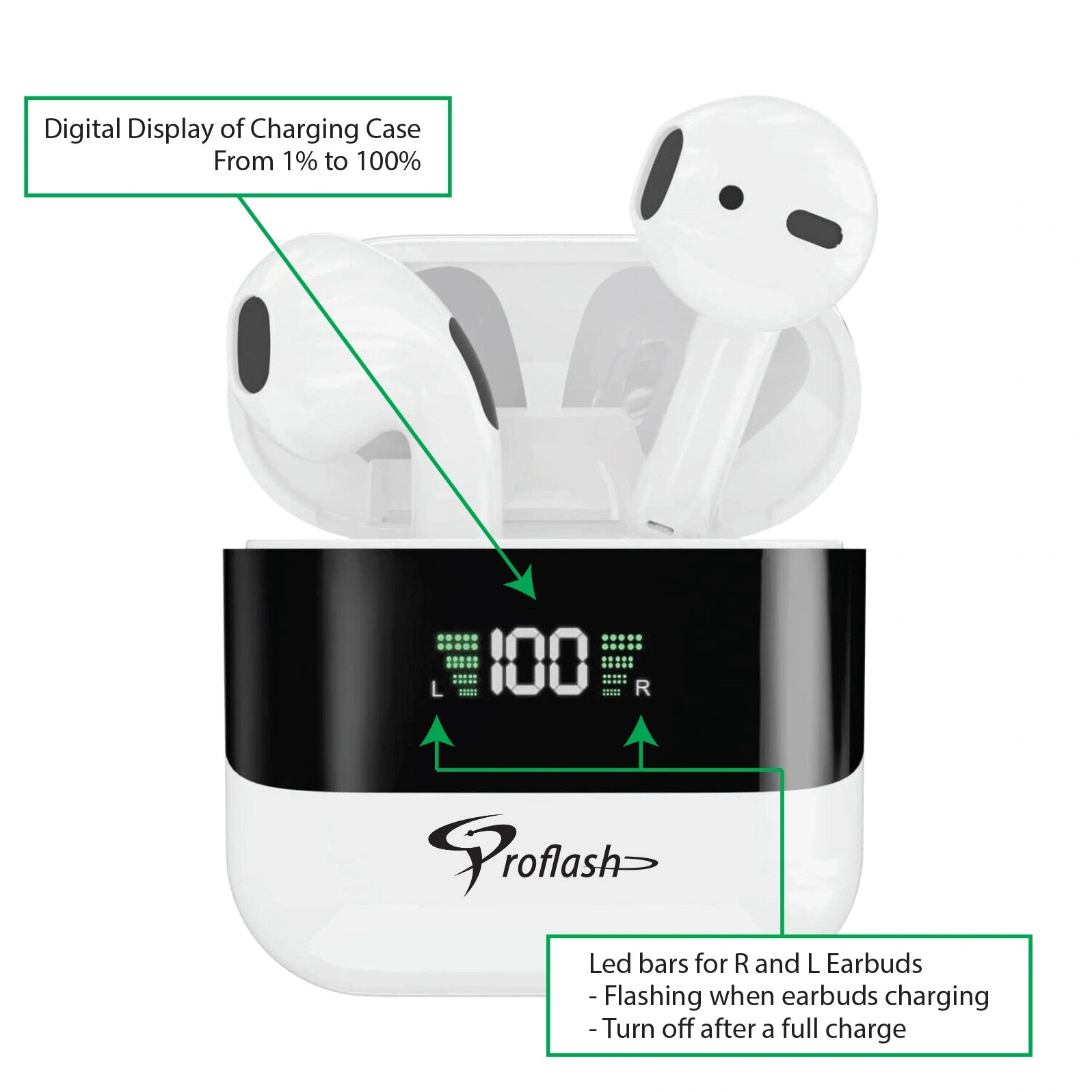 Upgrade your listening experience with the Proflash BT008 Wireless Earphones. Featuring a sleek design, advanced technology, and a convenient smart display, these earphones deliver unmatched performance for music, calls, and more.
