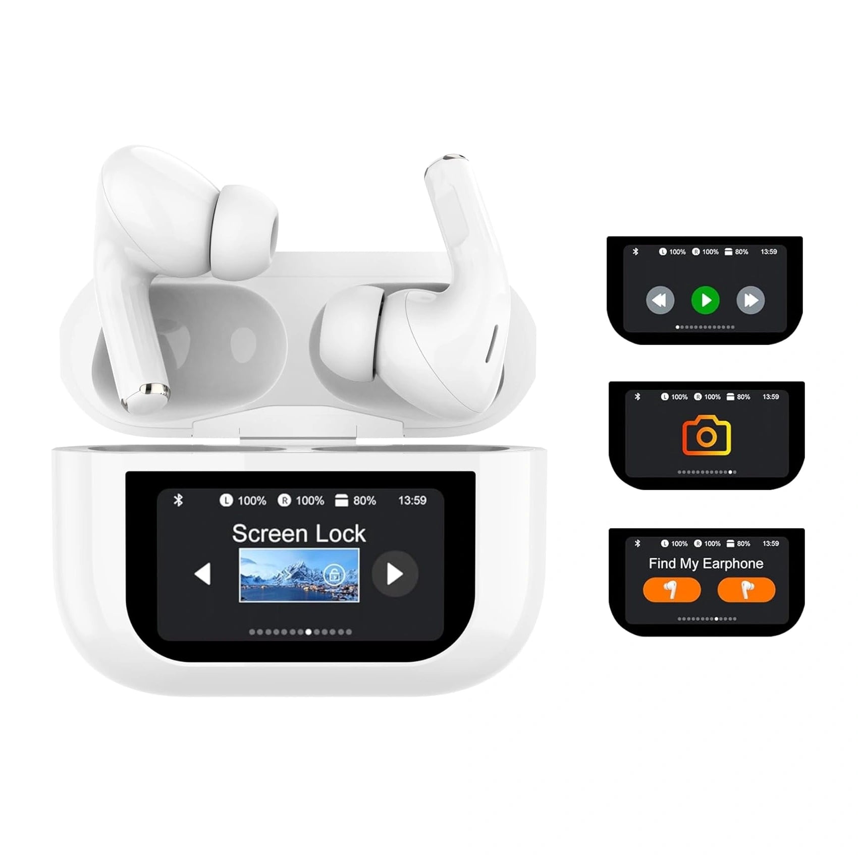 - Built-In Smart Display: The charging case includes a high-resolution display for monitoring battery levels and media playback.